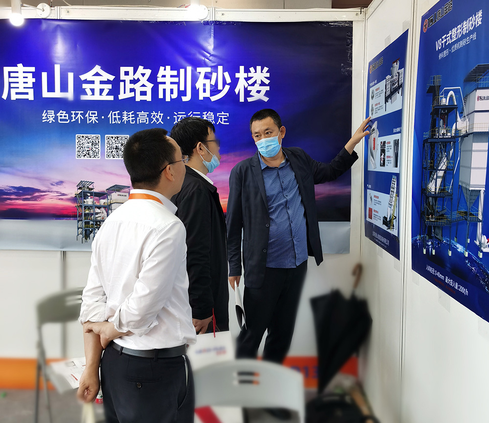 作為機制砂機械設備領域的相關企業,唐山金路以機械設備提供商的身份亮相此次展會,展出展品為V8干式整形制砂樓、V9干式制砂樓、高頻篩、無動力選粉機、機制砂選粉機等。每樣設備皆是唐山金路數年研究的成果,設備產出的機制砂粒形圓潤、級配合理,是制砂生產企業的理想產品。